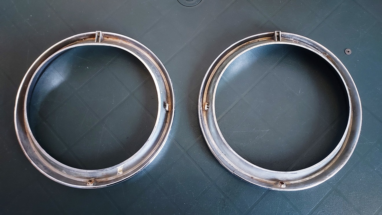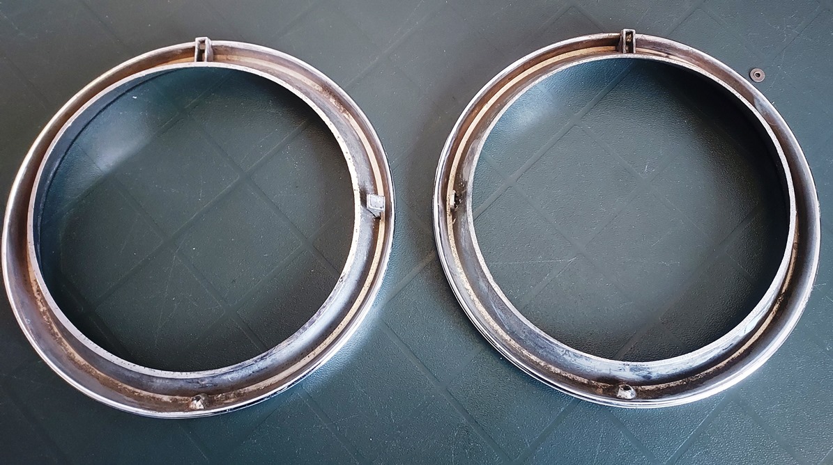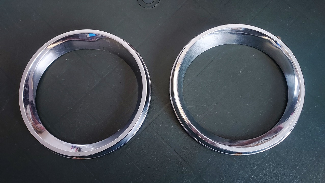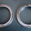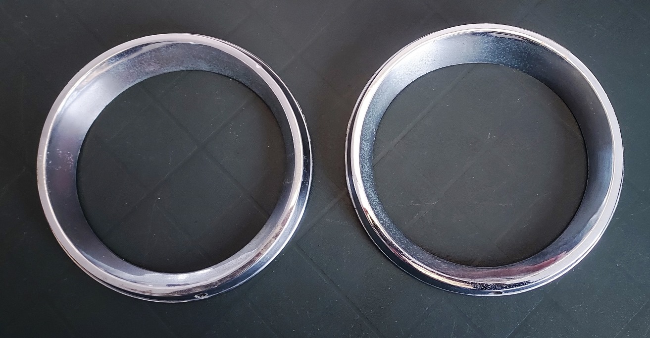 Coppia di cornici faro cromate per A112 Abarth prima serie, in plastica, nuove con con due piccole rotture o usate con una piccola rottura. Art. L-49 - 20.00 Euro