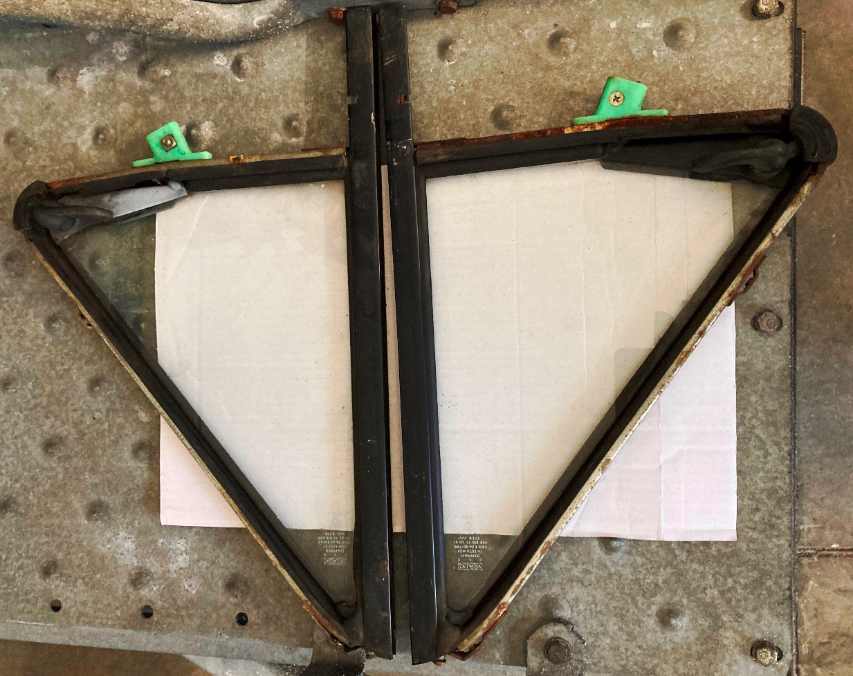 Coppia di deflettori originali Sicursiv per A112 Abarth quarta serie, colore neutro e completi di telaio e galletti, usati in buone condizioni. Art. C-08 - 30.00 Euro